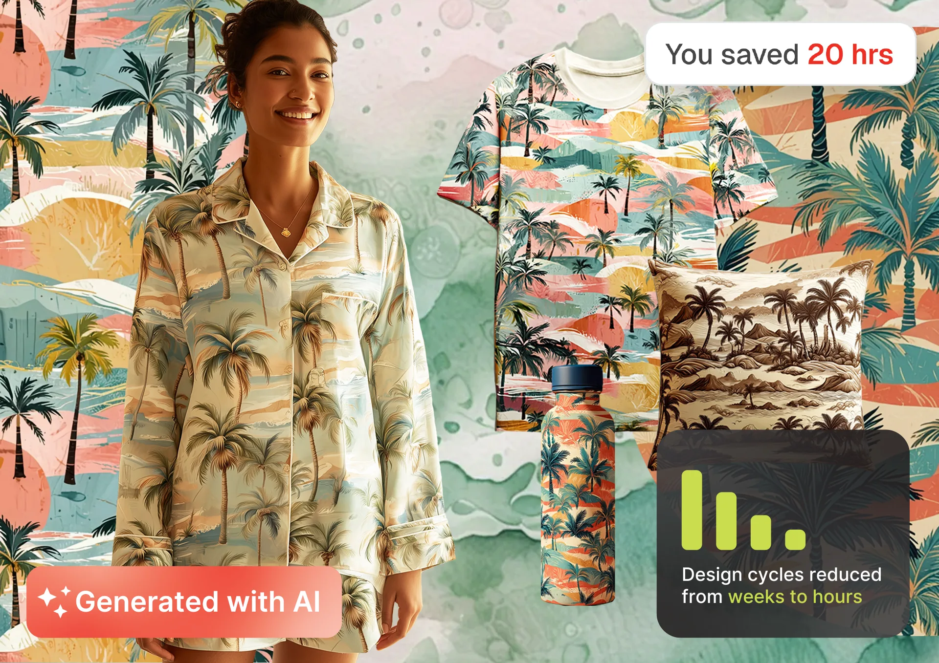 Recolor, restyle, and preview patterns on real products with AI mockups before printing a single sample.